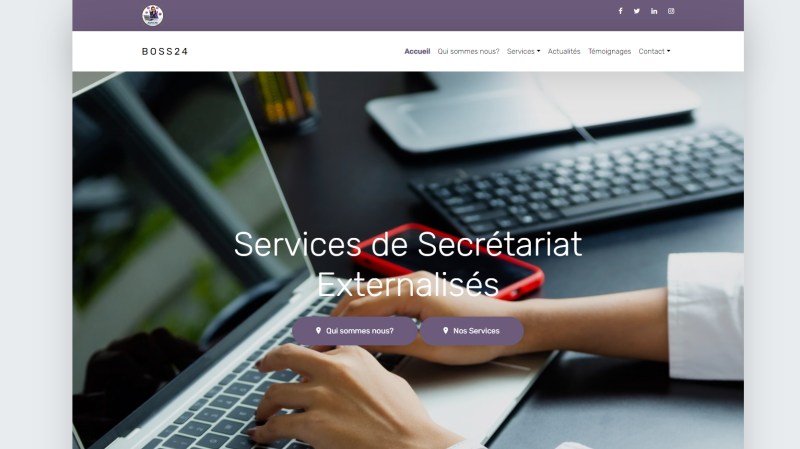 Nous sommes heureux d'annoncer le démarrage de notre nouveau site « boss24.fr ». Ce dernier permettra prochainement à nos clients de profiter de nos services à distance dans le même esprit que ce que nous pratiquions au préalable en présence de nos clients.